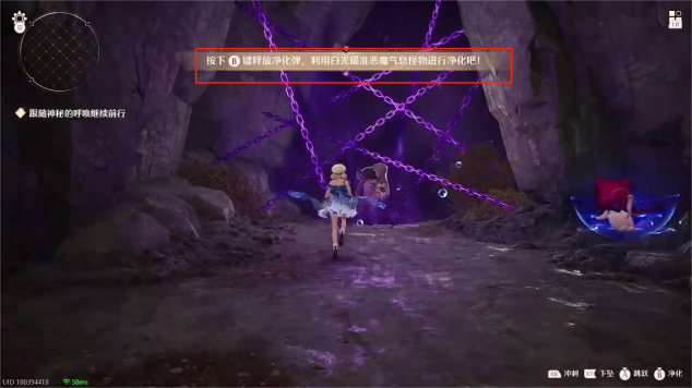 首先在游戏一开始,操控主角暖暖前进,直到跑到尽头之后使用净化能力打开打山洞的门。