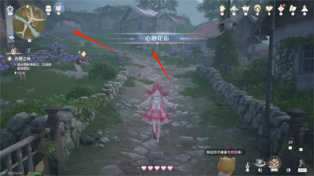 继续前进之后主角来到了花愿镇,沿着道路指示前往搭配师协会,解锁美鸭梨。沿途遇见的奇想星可以尽力获取,方便主线的时候解锁新的能力服装。