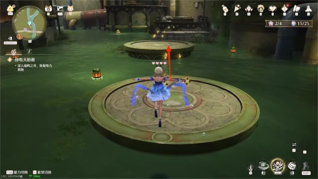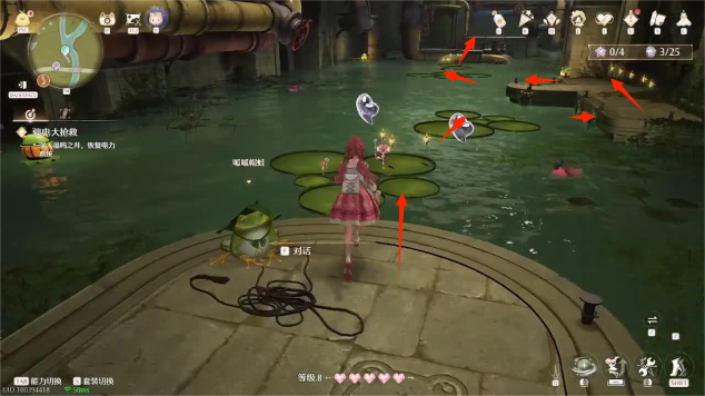 接下来正式前进,沿着荷叶跳跃到对面平台,中间需要注意躲避泡泡的攻击。到达对面之后开始修理第二个电机。