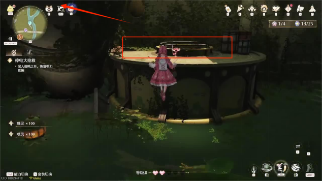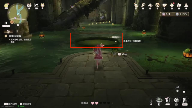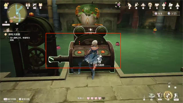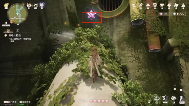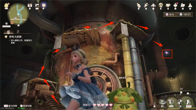 紧接着进入副本的下一阶段,在一开始就使用大喵视角可以看见第二颗奇想星,紧接着维修另一个电机解救青蛙。