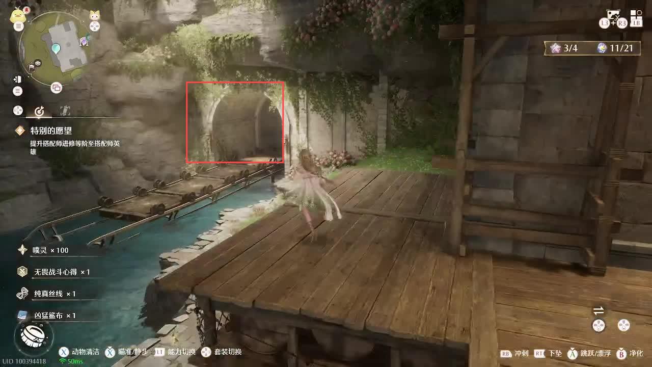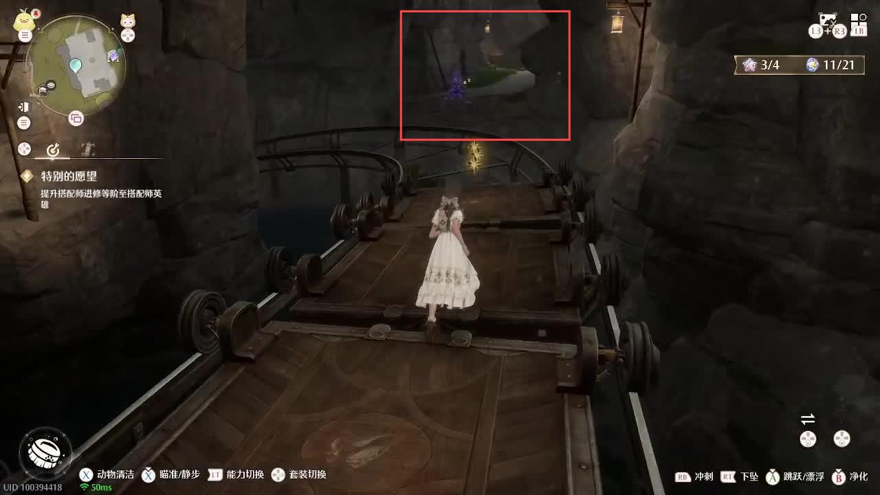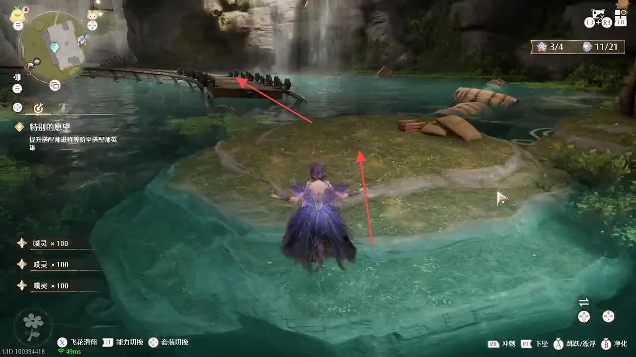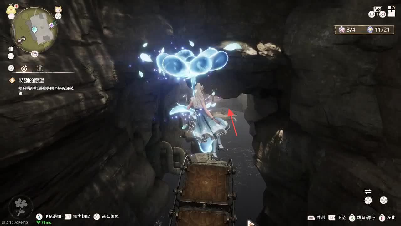 沿着目标一直前进会遇见一道悬崖,使用漂浮能力跳跃过去之后就来到了目的地。
