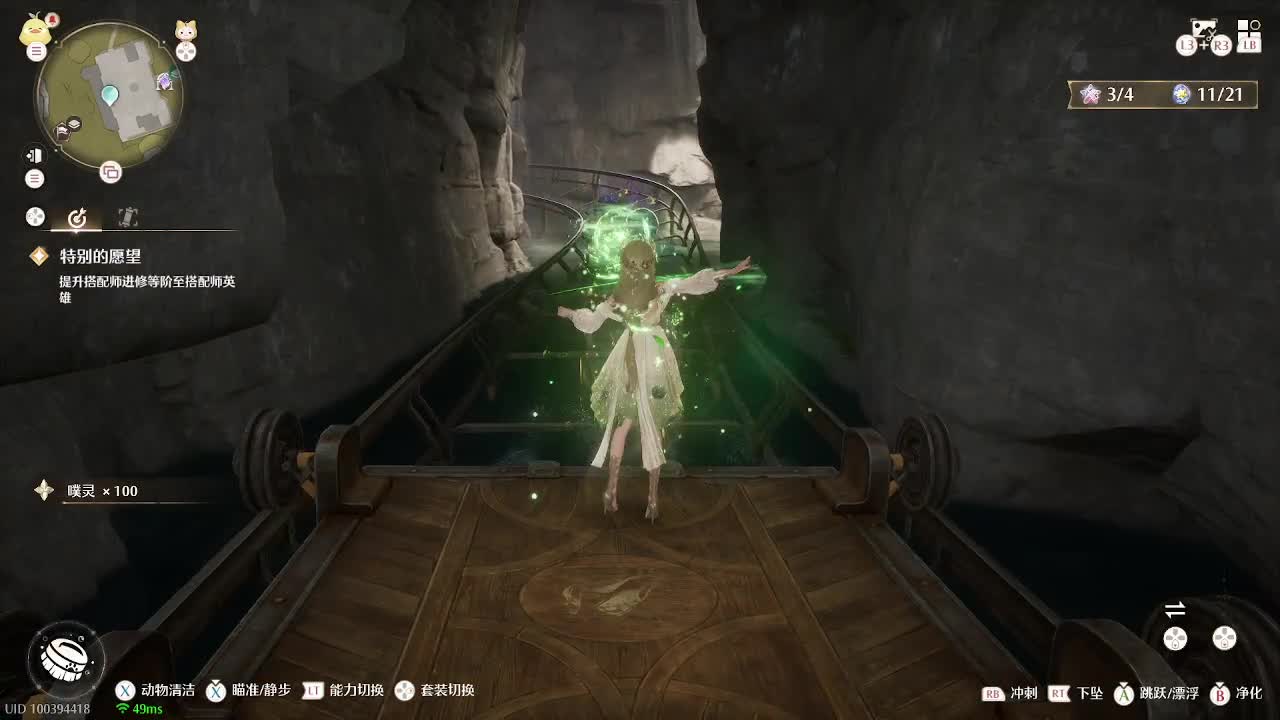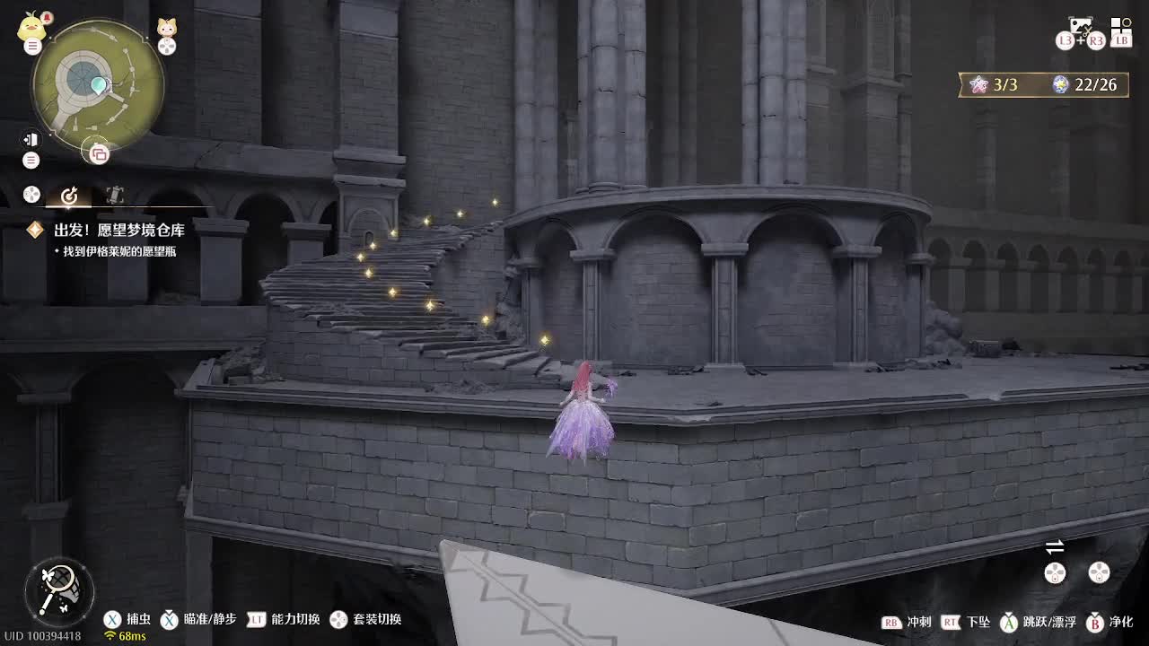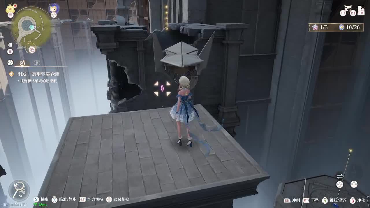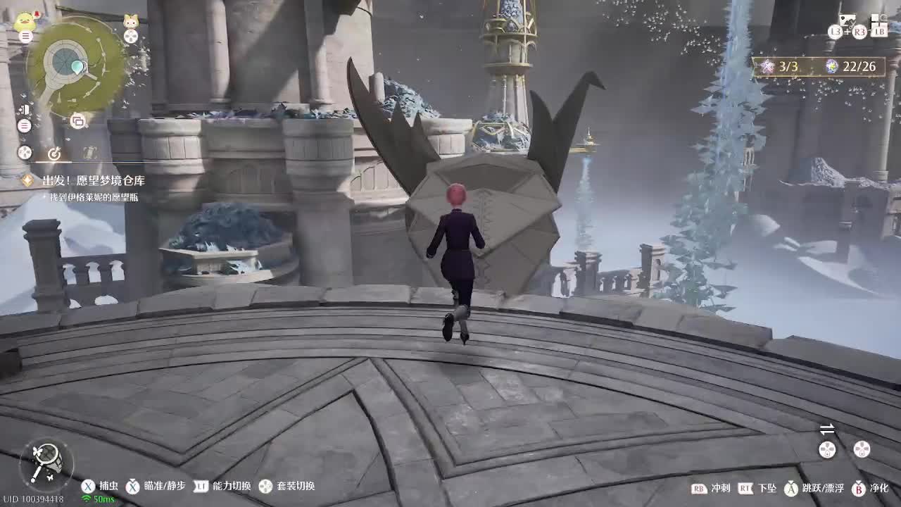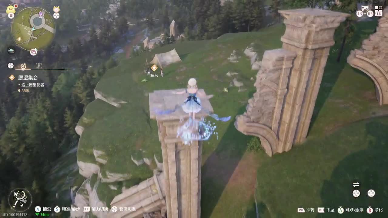 沿着目标一直前进会遇见一道悬崖,使用漂浮能力跳跃过去之后就来到了目的地。