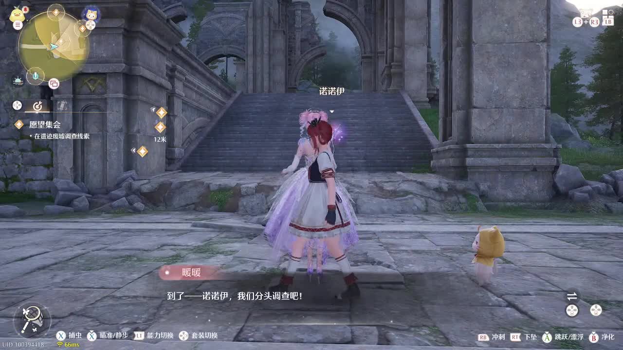 紧接着传送到秘密基地,对话之后跟随诺诺伊行动,到达地点之后需要分别调查,在屏幕的左边墙上就是第一个调查点,跟随标记继续前进同样在左边的墙壁上上解锁第二个调查点。