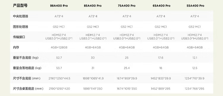 11 月 30 日消息,TCL 官方刚刚宣布,TCL QD-Mini LED 艺术电视 A400 Pro 今日正式上市。提供了五个尺寸,汇总如下: