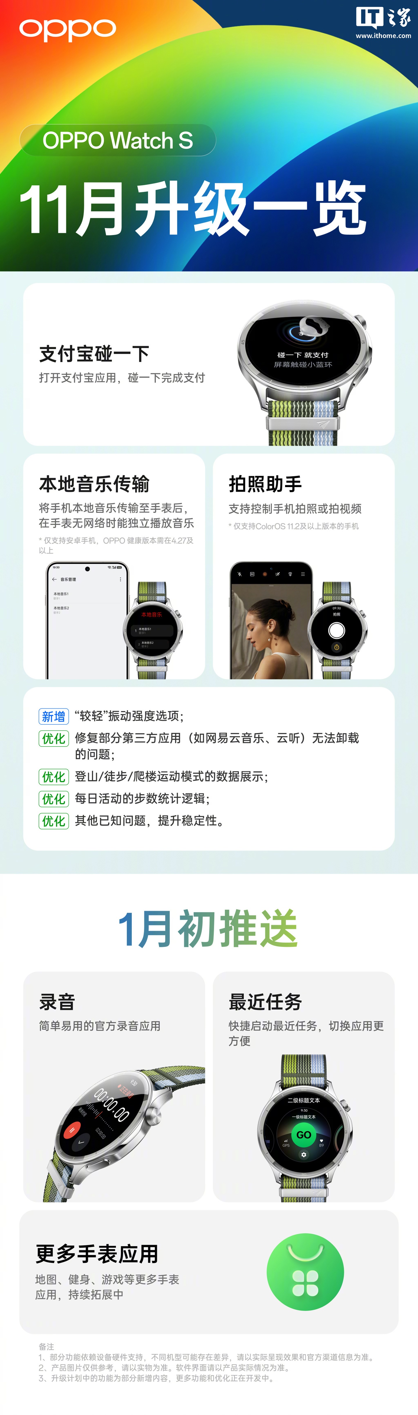 附 OPPO Watch S 升级一览如下: