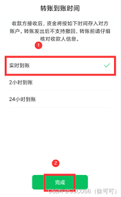 选择好到账时间后,点击“完成”按钮,然后输入支付密码或者进行指纹验证等支付操作,完成转账。