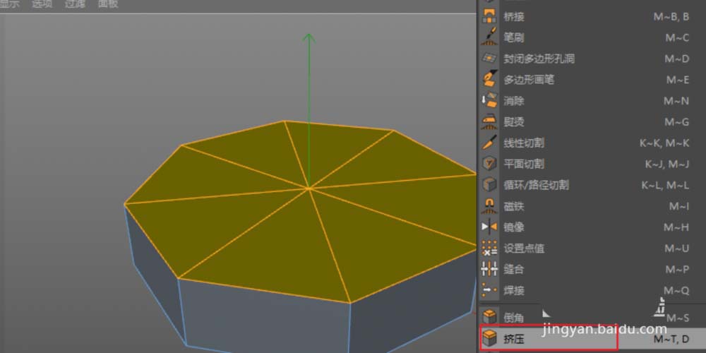1、创建一个八边形的样条线,并对其进行挤压得八边形平台,转为可编辑多边形后,选中最上的面进行缩放复制,和挤压得到平台。