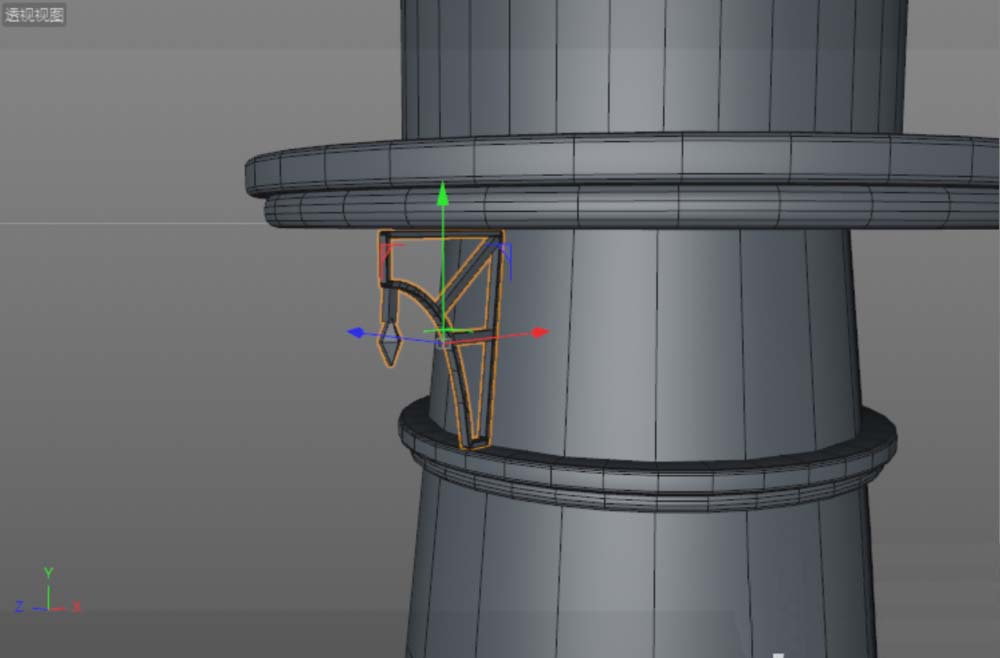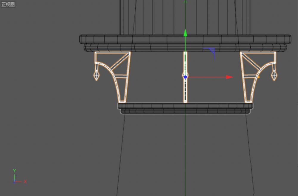 3、在塔身大概三分之一处,放置一圆管,调整半径,转为可编辑多边形后对边进行缩放和挤压得到托底形状。其上一层的形状和托底的结构相似,复制托底,调整其大小得到平台底。