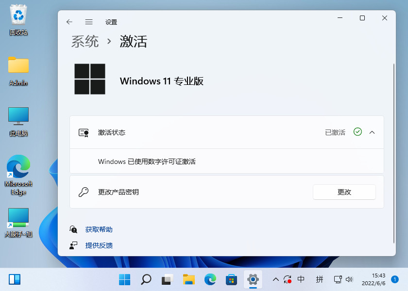 4、单击“更改产品密钥”前的更改,然后输入您记下的产品密钥以激活此操作系统。