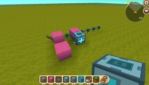 4、如果两个滑动方块可以正常运转,那么我们就来做第三个滑动方块,如图所示,我们放置好+号和-号方块,以及用辅助方块让滑动方块控制好朝向;