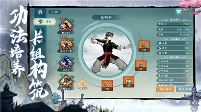 3、游戏中有很多卡牌招式,比如雪山飞剑等,采用简单的回合制战斗模式。