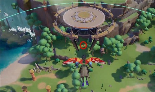 由于这个高塔不能攀爬,需要通过简易码头这个人工岛上飞过去。