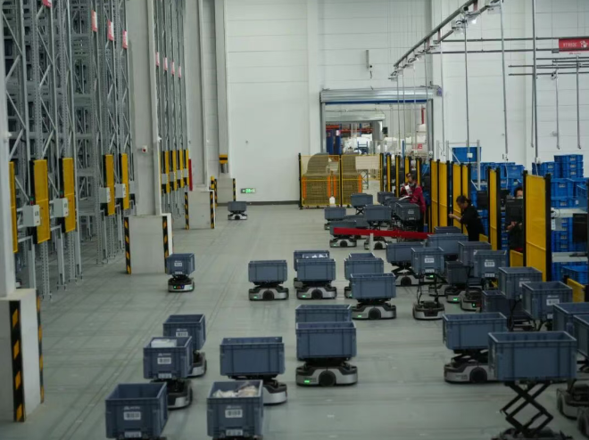 从官方介绍获悉,在京东物流深圳智狼仓中,近 200 台智狼搬运机器人和飞梯机器人,以及高密度货架、定制化料箱、自动入库工作站等构成了庞大的“智狼货到人系统”,可在存储、搬运和拣选等环节实现自动化操作,实现生产效率的大幅提升。