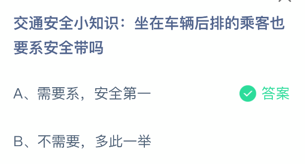 以上就是交通安全小知识:坐在车辆后排的乘客也要系安全带吗,支付宝蚂蚁庄园2025年12月2日答案最新,更多精彩内容,请点击关注本站手游网更新!