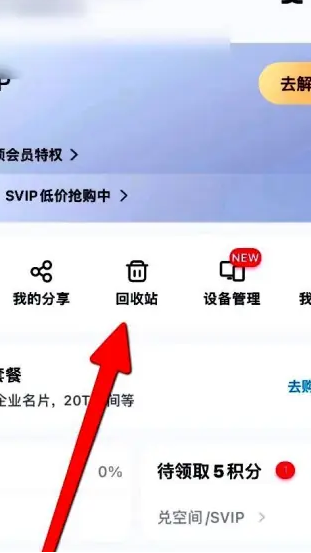 2、在个人页面中,仔细查看界面内容,找到回收站图标并点击,准备进入回收站查看删除的文件。