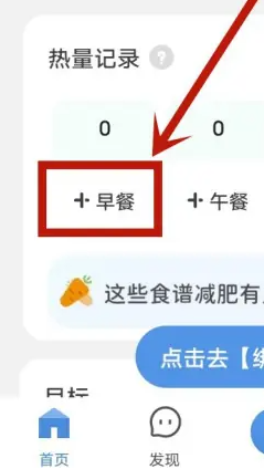1、打开OKOK进入主页面,根据实际饮食情况点击选择添加早餐选项,进入早餐记录页面。