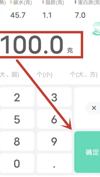 3、输入所选食物的具体数量,确认无误后点击确定按钮,提交完成早餐记录操作。