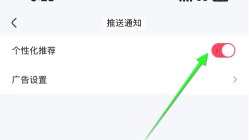 3、在推送通知页面里,找到个性化推荐项目,将其关闭便能完成个性化推荐的关闭操作。