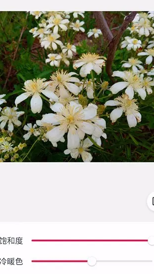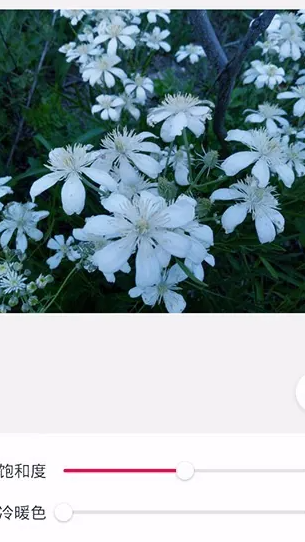 5、在色彩调整页面通过调整饱和度和冷暖色滑块改变图片色彩效果达到满意效果。