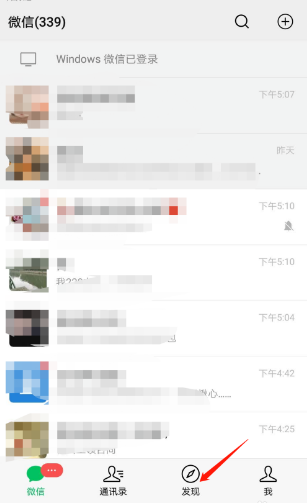 2、接着,进入微信界面,点击发现进入。