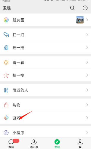 3、再接着,进入发现界面,点击游戏。