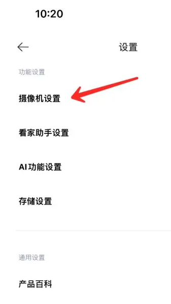3、在小米摄像头设置页面里找到摄像机设置选项并点击,进入详细设置界面。