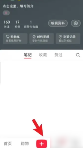 1、打开小红书APP,进入应用主界面,点击底部的“+”图标按钮。