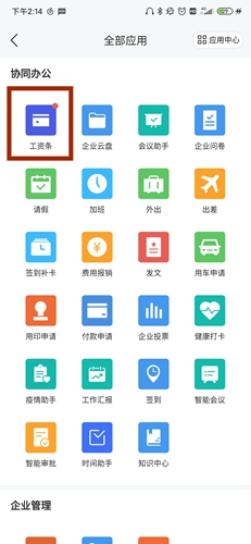 2、在应用大全里找到工资条后点击进入,经过身份验证,如输入独立密码或使用指纹、faceid解锁等,即可查看本月工资明细。
