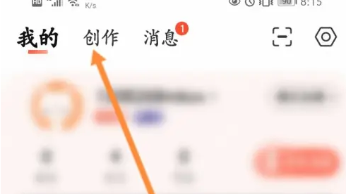 2、在账号页面上方找到创作选项并点击,进入平台创作中心界面。