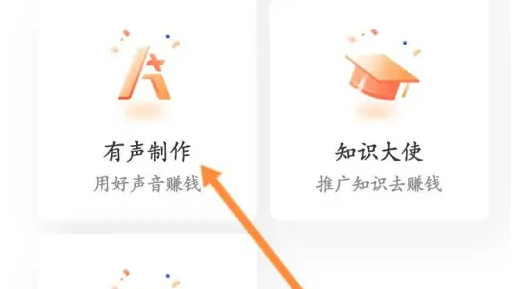 4、在收益获取页面中找到有声制作选项点击,进入有声制作任务平台。