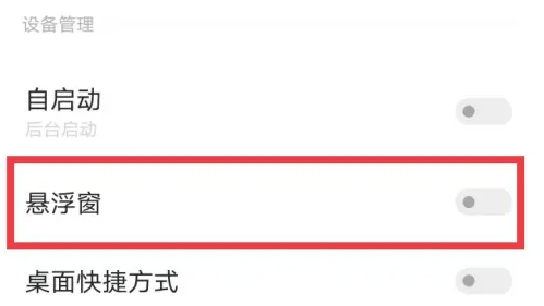 4、在权限设置页面里找到悬浮窗功能选项,将对应的开关按钮开启即可。