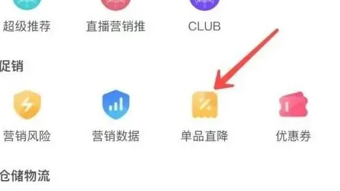 2、在功能列表页面浏览各项选项找到“单品直降”并点击进入设置界面。