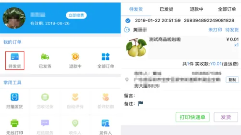 5、确认勾选订单无误后点击页面“打印快递单”按钮系统自动获取单号发送指令等待打印机完成快递单打印即可进行后续发货。