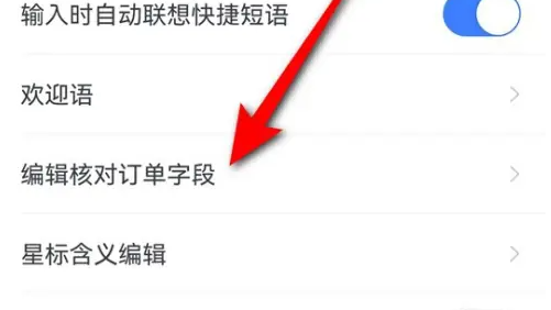 4、在消息设置界面里点击“消息接待设置”再找到“编辑核对订单字段”并点击进入。