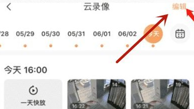 3、在概览页面右上角找到“编辑”按钮并点击,进入监控录像片段的编辑状态。