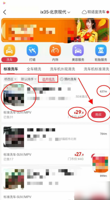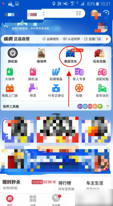 2、进入首页找到“美容洗车”选项点击进入,该选项汇集了各类洗车服务相关内容。