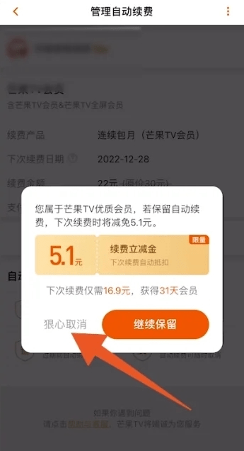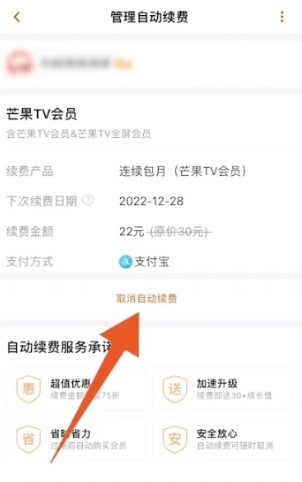 3、点击【芒果TV续费】项目,进入后点击【取消订阅】即可。