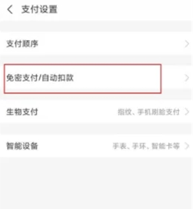 3、在【支付设置】中,点击【免密支付/自动扣款】项。