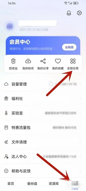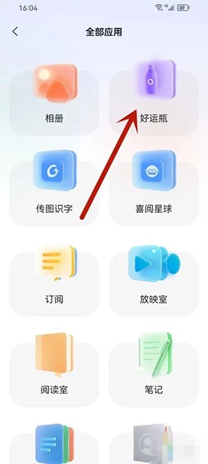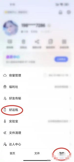 1、打开阿里云盘app,进入到我的页面,点击“好运瓶”图标。