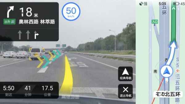 4、驾驶过程中依据画面中出现的3D箭头标识和语音提示进行转向变道等操作。