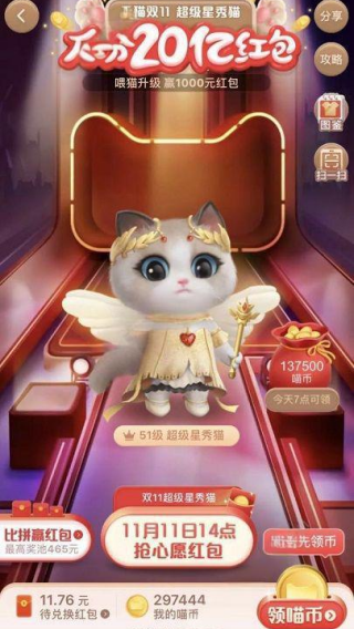 1、活动入口与队伍管理:打开淘宝进入“双11星秀猫”活动界面,点击右下角“组队领红包”进入队伍页面。