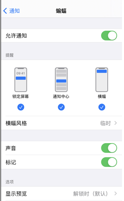 5.接着点击“通知”选项,打开允许通知和开启铃声开关并选择需要的铃声。