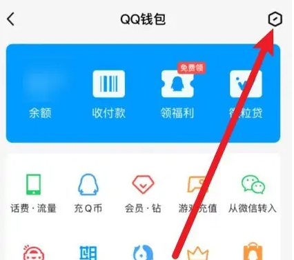 2、然后在QQ钱袋界面,点击右上角的设置按钮。