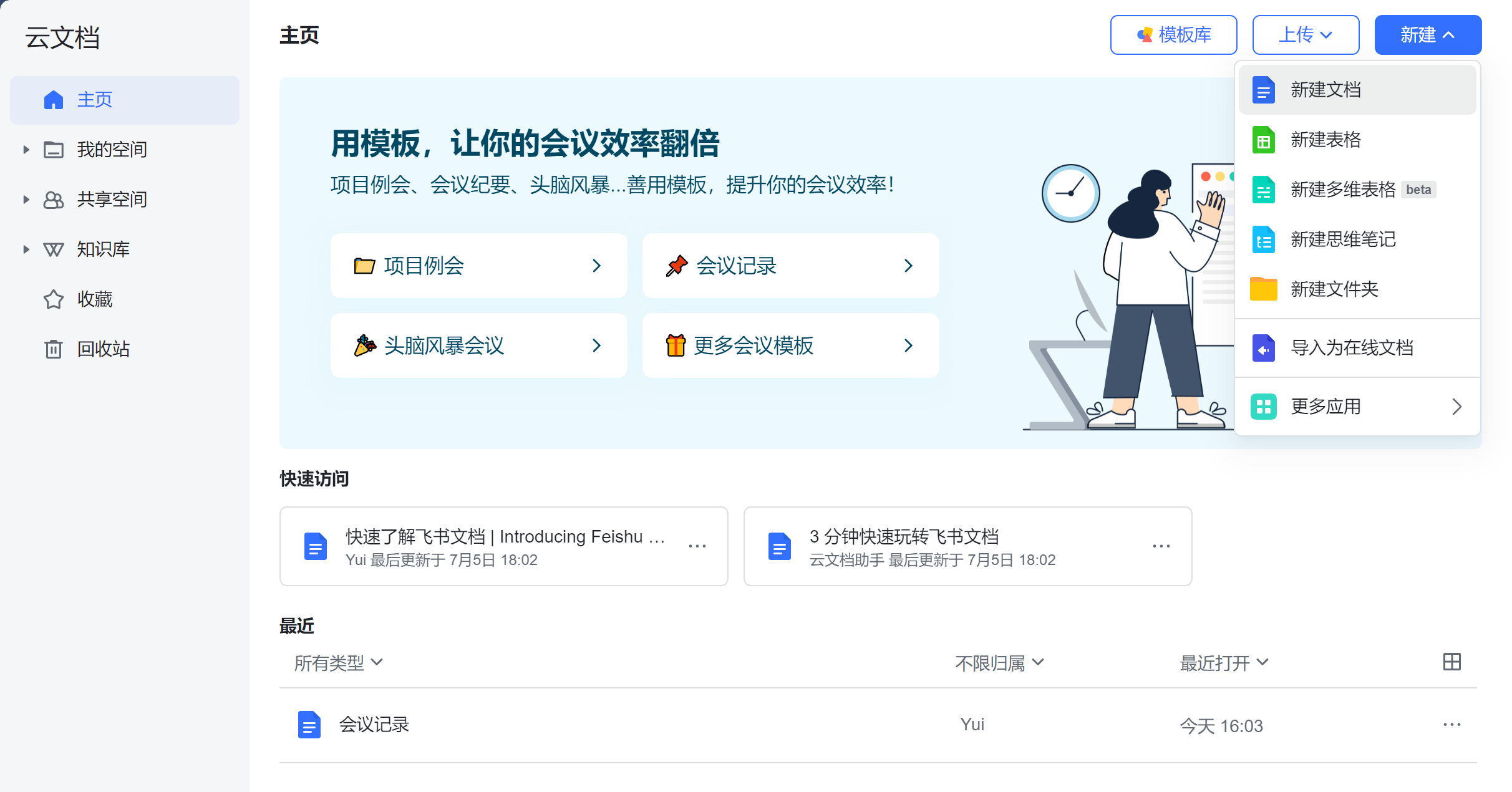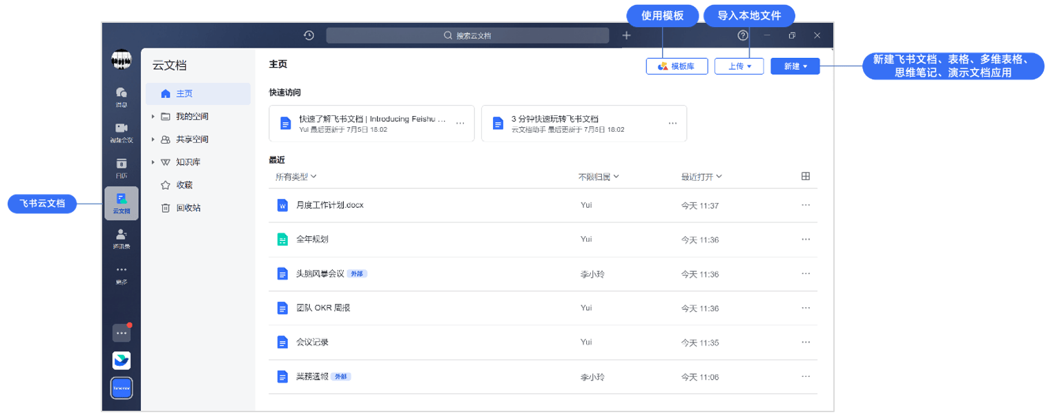 在飞书导航栏,点击文档图标,进入飞书云文档主页。
