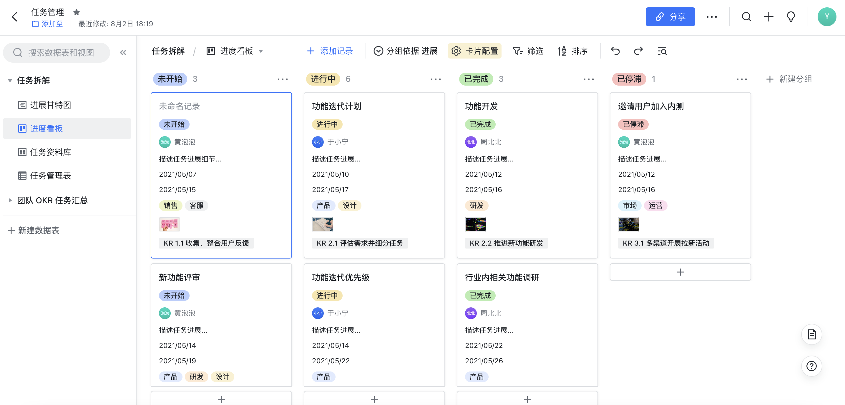 多维表格页面左侧为导航栏,页面主体部分呈现数据表。