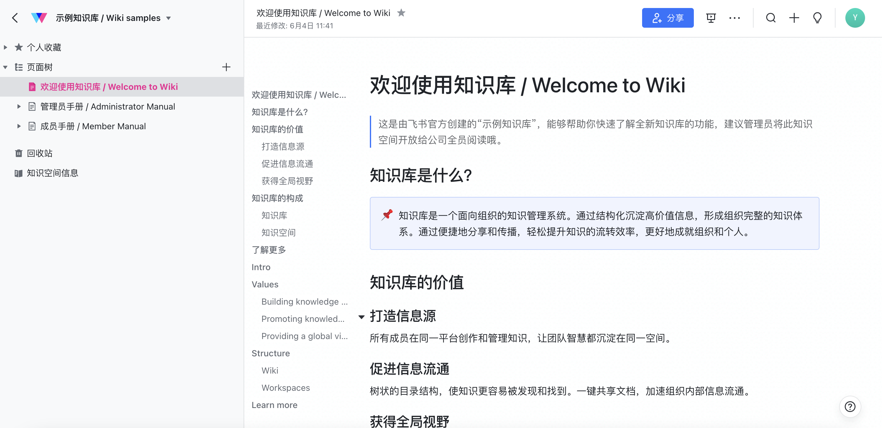导航栏可以让你快速了解知识库的内容和架构。点击条目,你可以快速定位、跳转到感兴趣的文章。