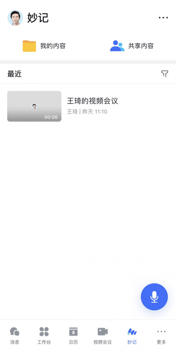在飞书搜索栏或者工作台搜索栏搜索“飞书妙记”,或在底部导航栏中找到“妙记”,点击即可进入妙记主页。在列表页可以查看我的内容和共享内容,便捷管理所有妙记文件。点击任一文件即可进入对应详情页,左滑则可删除文件。