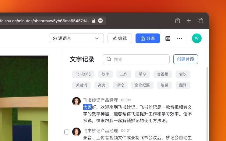 飞书妙记是字节跳动旗下的一款音视频语音识别转文字的在线工具,使用完全免费。