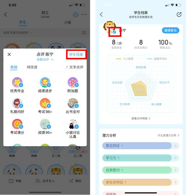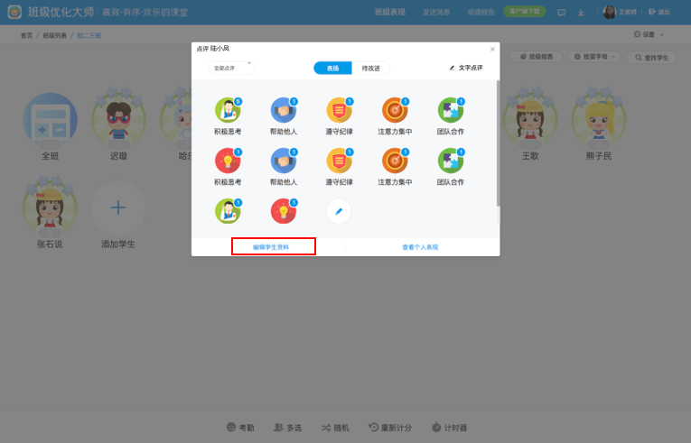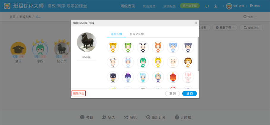 3、只有班主任才有权限修改班级内学生的头像和姓名噢。