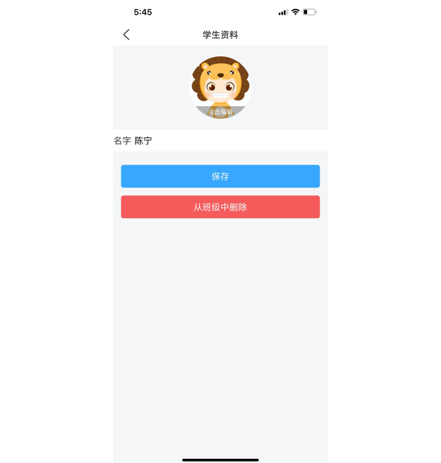 3、点击学生头像,选择编辑资料,即可对学生头像和姓名进行修改。